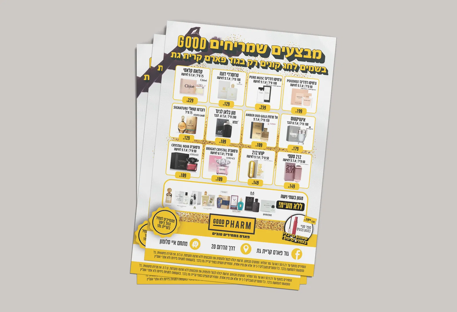 עיצוב ברושורים, פליירים, כרטיסי ביקור, תעודות, שילוט ועוד – בהתאמה לקונספט המיתוגי, תוך הקפדה על קריאייטיב, קריאות ונראות.